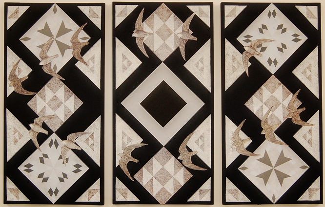 Chimney Swallows (quilt pattern: swifts), acrylic on canvas, 48 x 72 inches
