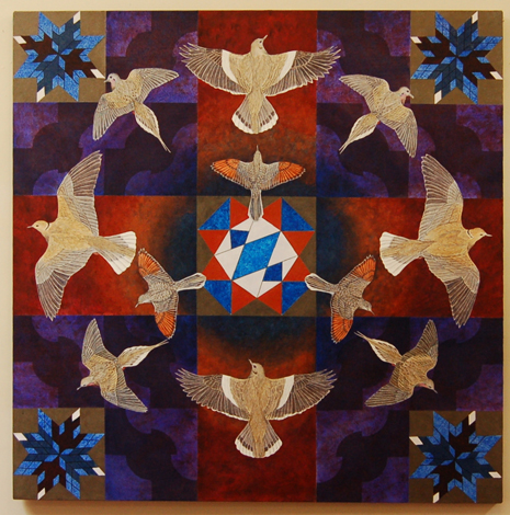 Colorado Doves (quilt patterns: Dove at the Window, Doves at the Window), acrylic on canvas, 58 x 58 inches