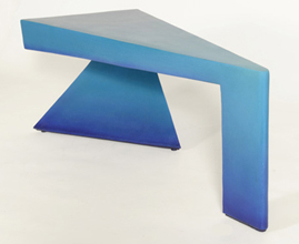 <Previous Next> Blue bench/ table height 16" width 40" diameter 18"