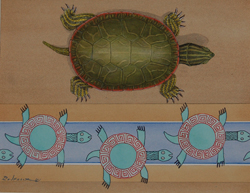 Radeaux paints the fauna of his native Colorado. The life sized images of birds and other animals are not merely idealized illustrations but explore the patterning and geometrics found in nature. Spatial relationships and comparison to stylized depictions of nature from various cultures are also part of this art. It is a style that is unique to Radeaux, a combination of detail and restraint, repetition and rhythm.